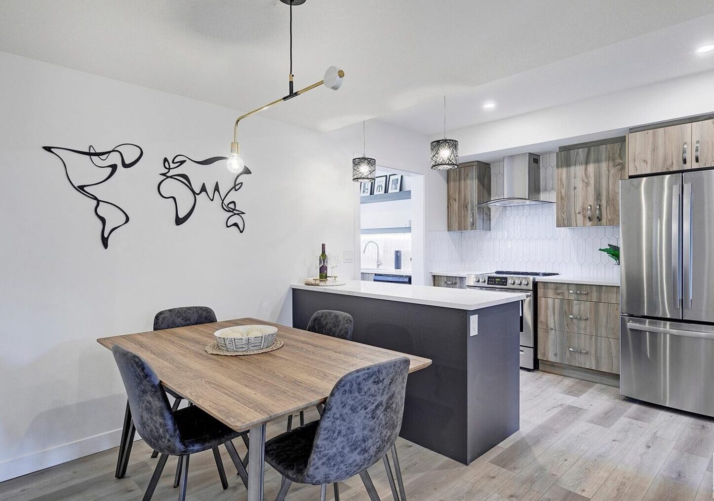 We were able to carve out 3 Bedrooms, 2.5 Bathrooms, a full size Mudroom, a Kitchen nook, a separate formal Dining space, AND a large spacious kitchen! On the outside we built a oversized 2 car garage and a large front deck to enjoy the outdoors!